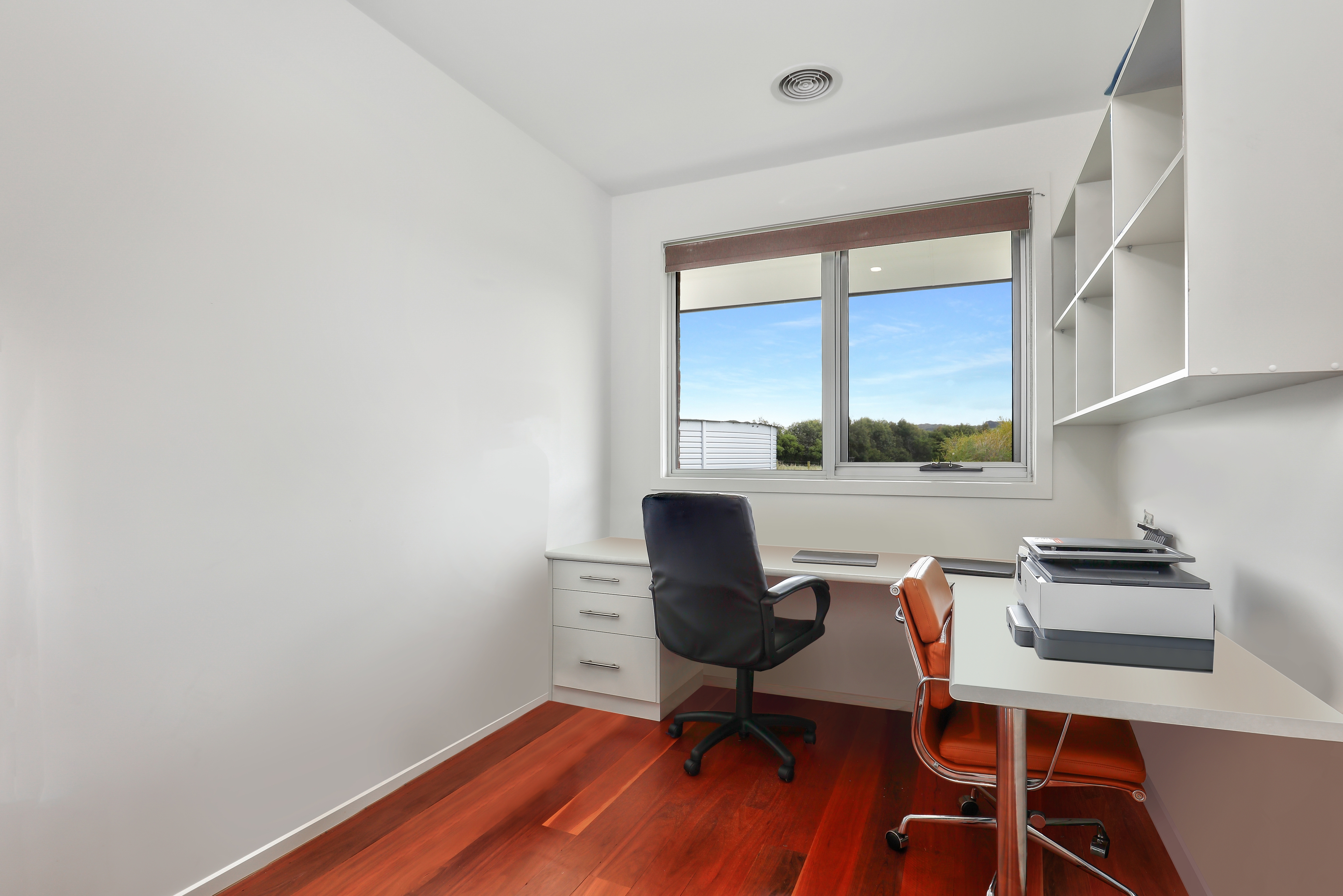 A meandering crushed gravel driveway stretches all the way to the home, offering glimpses of the stunning views beyond. The residence boasts an expansive 335 sqm of internal living space and has been built to an exceptional standard, with a BAL-29 Fire Rating. Featuring hydronic heating under the slab, ducted heating and cooling, as well as double glazed windows and a beautiful built-in double-sided fireplace, this family home provides the ultimate in creature comforts.