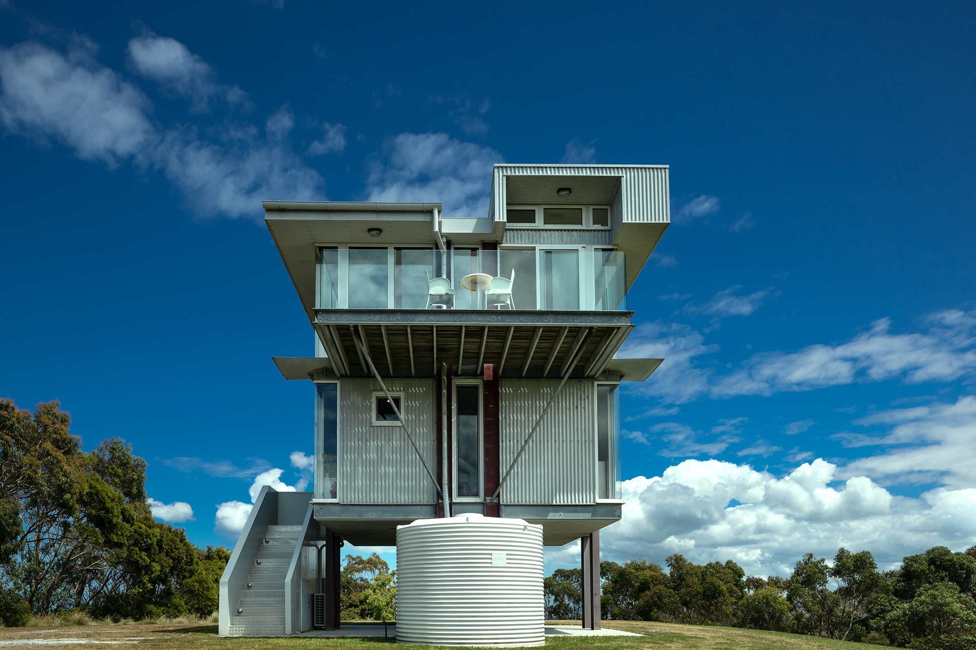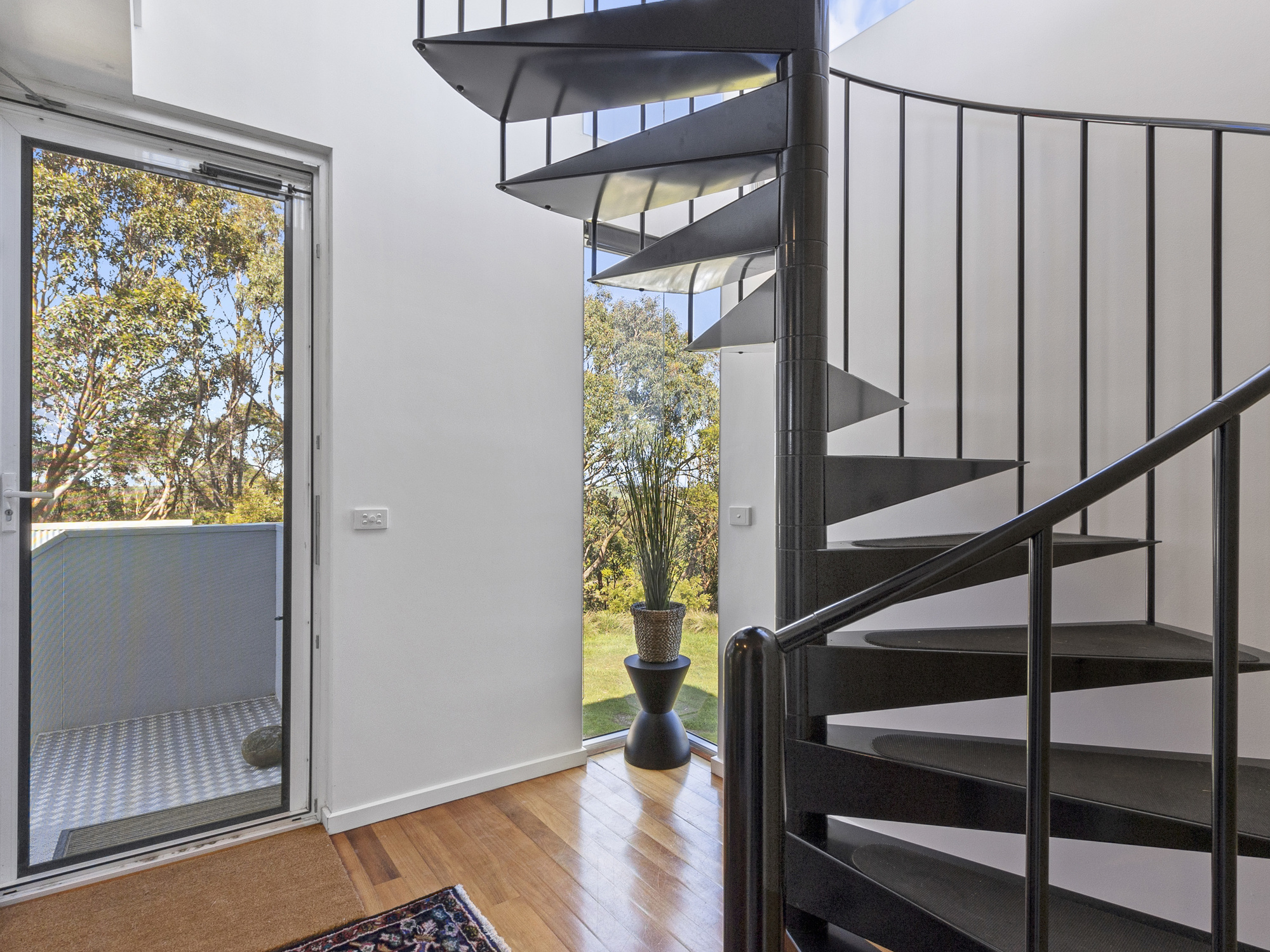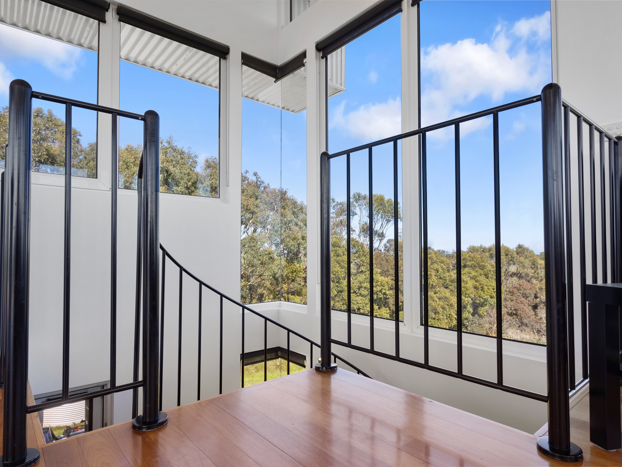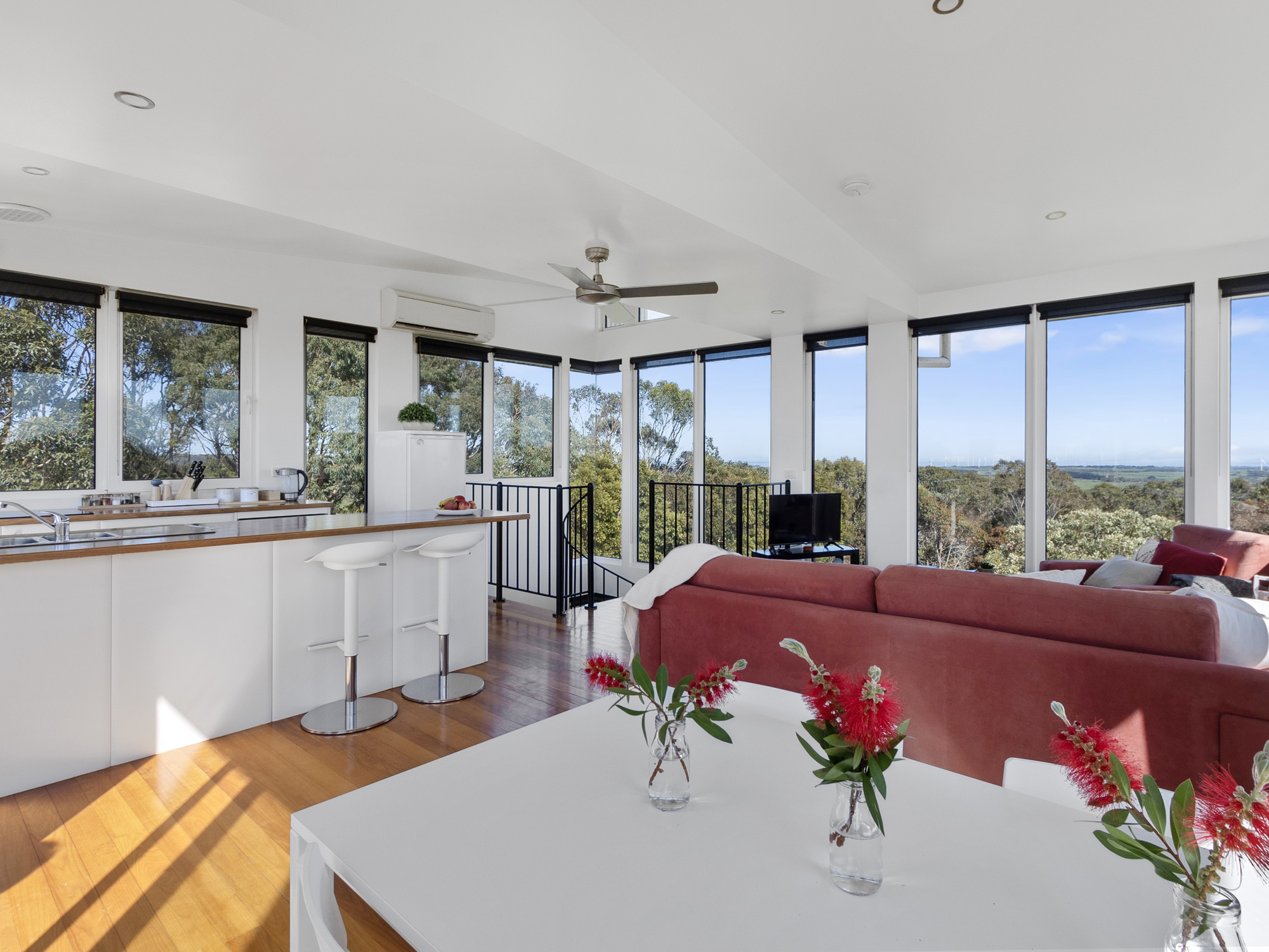 As you enter the first floor, gleaming blackwood floors welcome you and the spiral stairs beckons you to climb to the living area, which as you ascend, reveals the buildings’ real purpose, to capture some of the most famous views in Victoria in this modern rendition of a tree house.