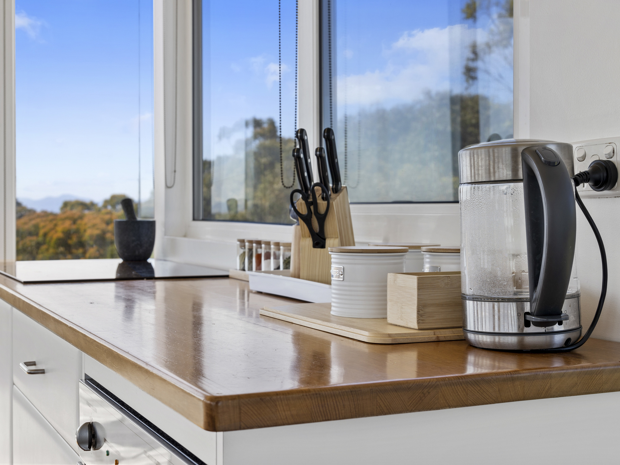 Tilt and turn windows are positioned to capture the sea breezes, while a split system aircon’ unit and fan provide further heating and cooling as required.