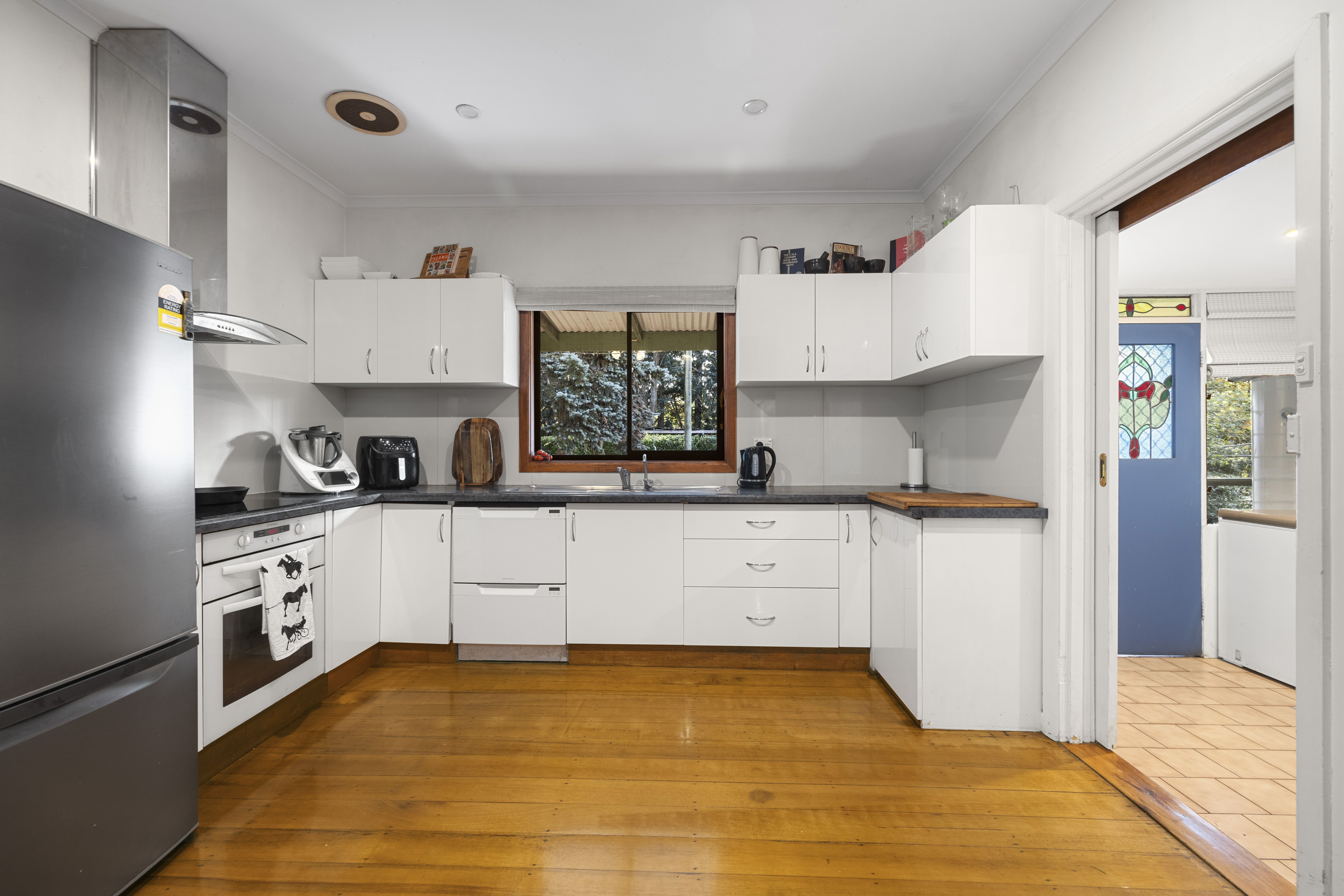 As you arrive, make your way down a long & serene driveway with farmland to either side, you get a real feel for the ambiance of the property. The home is surrounded by gorgeous mature gardens & trees including a range of fruit trees; apples, pears, plums, nectarine, peach, nashie, orange, lemon, apricot, olive, grapefruit, & cherry, all giving you the sense you are a world away from any neighbours. Boasting four bedrooms, all a great size & with built in robes, this property would suit anyone from retirees to families. A central living area with solid fuel heating offers a lovely outlook to the garden & connects seamlessly to the kitchen/dining area complete with timber floors, electric cooking, double drawer dishwasher & reverse cycle air conditioning. The master bedroom has a fantastic walk through robe with access to the central family bathroom - the perfect place to take a bath & unwind while you gaze out the window at the gardens & trees. A handy mudroom leads to a laundry with a second shower. With a wide verandah to three sides there is plenty of room for entertaining or for the kids to play.