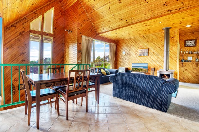 This stunning property is positioned on approximately 737 square meters and is located in the prestigious First Estate of Venus Bay. The property is conveniently located near the town centre and Beach 1, and features a beautiful 4 bedroom, 2 bathroom home with a cozy wood fire. The stunning timber decking offers breathtaking natural views. The property boasts a neat and tidy low maintenance garden, along with a huge lockable 2-car garage and additional stand-alone shedding plus huge carport. The high-end architectural design features rich, high-pitched timber ceilings, a separate laundry, and carpeted bedrooms. There is also a 3rd possible bathroom yet to be completed, and the fresh external paint work adds a touch of sophistication to this exquisite property.